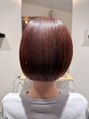 秋冬にぴったりな、深みのあるラベンダーブラウン。切りっぱなしボブとの相性も◎乾かして、軽くストレートアイロンを通し、最後にオイルをつけて完成♪