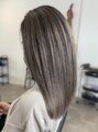透けるような透明感のミルクティーグレージュ。こちらはカラー剤でダブルカラーをしています。ブリーチよりも傷まず、ワンカラーよりも圧倒的に透明感がでるので、現状の髪色が暗めの方、いつもオレンジになってしまう方はこちらがおススメです♪