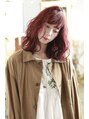ブリーチ履歴0回のヘアに、明るさと赤みを調整したカラー剤でローズレッドに。ブリーチオンカラーしたようなデザインにしました。仕上げは波ウェーブ、巻き付けと、ねじり巻きをミックスしました。シアバターでスタイリングしてゆるく、揺れるような雰囲気に
