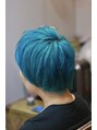 全体をケアブリーチカラー後、透け感のあるターコイズカラーをオンカラー。ダブルカラーで彩度をしっかり出しました。髪質改善トリートメントを超音波アイロンで浸透させることによって髪の毛を補修し、ダメージを防ぎます。