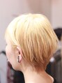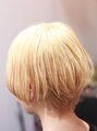 全体をケアブリーチカラー後、ブロンドカラーをオンカラー。ダブルカラーで透明感をしっかり出しました。髪質改善トリートメントを超音波アイロンで浸透させることによって髪の毛を補修し、ダメージを防ぎます。全体は軽さのあるグラデーションボブに。