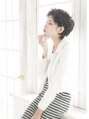 思い切ったレイヤースタイルで、トップにランダムな動きを演出。サイドはタイトに耳にかけ、襟足は外ハネで遊び心もオン。ハンサムなスタイルだが、どこか女性らしさも感じる動きのあるスタイルです。