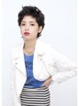 思い切ったレイヤースタイルで、トップにランダムな動きを演出。サイドはタイトに耳にかけ、襟足は外ハネで遊び心もオン。ハンサムなスタイルだが、どこか女性らしさも感じる動きのあるスタイルです。