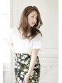 力の抜けたラフ感をイメージ、長めの前髪と透明感のあるカラーで艶っぽいナチュラルな大人女性に前髪は長めにカット、ハチ上にレイヤーを入れる。平巻でゆるめにパーマをかける。