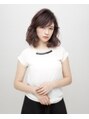 サイドパートに流した前髪が揺れ動くたびに色っぽさを演出 リッジカールがクールの中にも女性らしさをプラスやや前上りベース、トップにレイヤーを入れて動きをだす。前髪は目が隠れるくらいにカットフォワード&リバースのミックス巻きでパーマをかける。