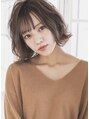 サクッとした切りっぱなしのカットが生む辛さとカールの甘さの絶妙なおしゃれボブ。スライドカットで自然な動きをオン。毛先はハネ感をつけ表面にルーズな毛束を遊ばせてシアバターワックスでふんわりとしたラフなムードをプラス。