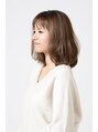 肩についてハネやすいレングスなので、あえて毛先は外ハネにセットし、おさまりとバランスの良いシルエットに。前髪は眉上ぎりぎりでカットすることで旬な抜け感が出て顔がパッと明るい印象になるので、大人の女性にもオススメ。【EARTH上野】