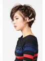 くるりんぱをつなげるだけで編み込んだようなニュアンスがつくれる、技ありアレンジ。ショートヘアも気軽にイメチェンできます。長めの前髪を活かして、細かなスパイラルに巻いて、全体のバランスをとって。【EARTH上野店】