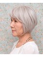 左右バランスの違うボブはショートにも見え、色々楽しめます。カラーも白髪を生かしてローライトを入れたので、立体感が出てより美しく見えます。