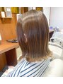 肩にギリギリかかる長さの切りっぱなし外ハネスタイル!お手入れ簡単なサラサラツヤスタイルでコテ巻きを外ハネに入れるだけで完成するデザインです!