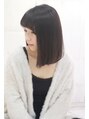 ボブデザイン。サイドは横から見たときに平行なデザインで大人っぽい印象に。前髪は眉にややかかる長さで流し女性らしさを出しています。