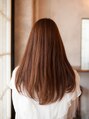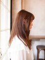 さらさらロングのナチュラルストレート。毛先は動きと軽さがでるように適度に質感調整をしています。前髪は少しラウンドにカットしてから毛先に軽くワンカールをつけて柔らかい雰囲気に。ツヤの出るブラウン系カラーで触りたくなる髪に!