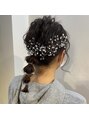 結婚式のおよばれヘア●肩少し下の長さで編み下ろしにしました!玉ねぎヘアが可愛い♪髪飾りはお客様ご持参のものです☆可愛い髪飾りご持参頂ければおしゃれにつけますのでぜひー!