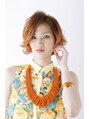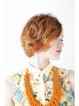 カットはシンメトリーのボブスタイル。パーマでアシンメトリーなシルエットにしました。カラーはセクションでイエローのポイントカラーを。オレンジのグラデーションでアヴァンギャルド感をだしました。