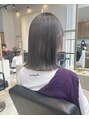 全体は濃いめのグレージュカラー、インナーカラーは白っぽく透けるラベンダー系のカラーの切りっぱなしスタイルです◎ シンプルな切りっぱなしのスタイルにコントラストのあるカラーで透明感も出すことのできるおすすめなスタイルです。