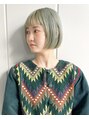 ペールトーンのグリーンカラー。ストレートのボブにハイトーンの色素薄めのカラーはおしゃれで抜け感のある雰囲気になります。オイルしっかりめでモードに見せても◎色持ちをよくするために染めたてはブルーを感じるくらいにすると色落ちもより楽しめます^^