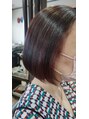 内側部分がホームカラーで暗くなっていたので一度ライトナーでリフトアップしたのちに表面は暗め、内側は一番明るいレッド系のお色に染めてます。表面になる部分を少なくとる事で下ろしたときに内側の明るい部分が放射線状に出てくるデザインカラーです★