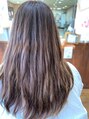 段は入れずにまとまりを残しつつ、巻いた時に動きを出す為に毛先はすきました。ベージュカラーで透明感を残しつつ、落ち着いた印象に。超音波トリートメントで内部にまでしっかりトリートメントを浸透させました。