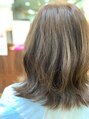カラー剤で1回明るくしてから、上からアッシュベージュをのせました。1回カラー剤で明るくする事で、より一層アッシュベージュの透明感とくすみ感が出ます。