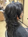 マッシュウルフに毛先に動きが出るようにパーマをかけました。カラーはブルーブラックでクールな感じに。