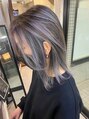 ミディアムの長さにパープルシルバーのバレイヤージュで立体感をプラス。光に当たると透けるような艶とくすみ感で、大人っぽい印象に仕上がります。草加駅近くの美容室ロコ