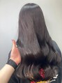 一見黒髪だけど、実はブリーチベースの寒色ブラック。光が当たるとほんのり透けて、重く見えない透明感カラー。暗髪なのに垢抜けて見えるのは、色の深さと絶妙な青みがポイント。色落ちもきれいで、長く楽しめるロングスタイルです。
