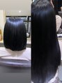 深みのあるブルーブラックで圧倒的ツヤ感。黒ベースでナチュラル見えしつつ、光に透けるとほんのり青が香る。エクステで長さと存在感もプラスした上品カラー。最高級エクステでカラーとも馴染むナチュラルロングヘアに。