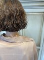 バッサリ顎ラインのボブあえて重さを残し大人可愛いパーマ仕上げ、最近流行りのスタイルでなによりスタイリングが楽ちん!フォームやミルクタイプのスタイリング剤がオススメです!