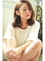 ざっくりかき上げたバングがおしゃれなミディアムスタイル。アシンメトリーなシルエットとラフな毛先の質感で大人っぽくしてみるのがオススメ☆カラーもアッシュブラウンでツヤと柔らかさをMIX!