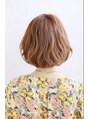 女性らしい丸みの中に、動きを加えることで華やかさを出しています。ピンクベージュのカラーをのせることで柔らかな艶を出し、ナチュラルにパーマをかけることでご自宅でも簡単に再現することのできるボブスタイルです。