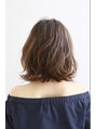 鎖骨レングスのミディアムスタイル。トップにボリュームがでるようにレイヤーを加えパーマはデジタルパーマでランダムに。襟足は外ハネにパーマを。カラーはグレージュで染めスタイリングはソフト系のワックスを揉みこみ手グシで整えて完成。