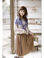 ふんわりワンカールではねてもかわいいミィディアムスタイル。カラーリングは艶と柔らかさが出るベージュ×バイオレットのミックスカラーがオススメです。