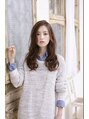 かき上げバングと大きめウェーブでリラクシーなロングスタイル。シルエットと質感は外国人をイメージ。カラーはパリジェンヌをイメージして抜け感ある柔らかな色に仕上げました。