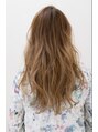 ランダムなカールの中に軽さと柔らかさがあるウエーブスタイルカラーは明るめで動きと柔らかさを表現したアッシュベージュカラー