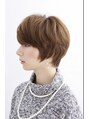 首筋の沿わせた襟足と、女性らしい丸みのあるマッシュシルエットで女度UP。カラーはベージュ系の色で柔らかく見えるようにハイライトも散りばめています。身長が低めでもスタイル良く見えるショートにしたい方おすすめです。
