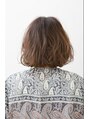 毛先のラインを残し、フリルみたいな動きのあるハネ感をメイク。前髪は眉上でバラつくように設定したところが今季のトレンドです。抜け感のある毛先の動きに、ネイビーブルーのカラーをのせてオシャレさを出しています。