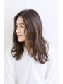 カラーは赤みを抑え、透明感を出せるようにグレージュに。細かくハイライトを入れることでより柔らかな印象に。パーマは根元からゆるく全体にウェーブが出るようにかけ、スタイリングはハーフドライでシアバターベースのオイルワックスをもみこむだけでOKです
