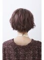 カジュアルなカールに少し落ち着きと艶のあるバイオレットアッシュでカラーリングを施しドライになり過ぎない、クールショートスタイル