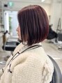 お顔を立体的に美しく見せる、アゴラインの大人ボブです。クラシカルに見せることも出来るシンプルなボブですが丸みを帯びておりカジュアルにも決まります。カラーはハイライトを入れオリーブベージュに仕上げています。
