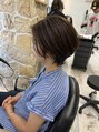 うるツヤ美人ショートボブです。カットラインがフェミニンな印象を与え、どんなファッションにも合うと思います。耳に掛けられる軽やかなサイドのレイヤーもポイントの一つです。カラーはシフォンアッシュで透明感を。