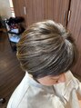 広がりやすい髪質の方でも、スタイリング剤付けないでここまで落ち着けます!カラーも白髪ぼかしで明るく!ブリーチでハイライト入れなくても良い雰囲気になります♪