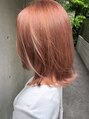 ダブルカラー/ピンクオレンジ/ツヤ感/カット/ミディアム