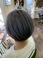 丸みのあるショートスタイルに柔らかいミルキーなバイオレットカラー。ブリーチもこだわりのケアブリーチでダメージを抑えてベースをコントロールしています。