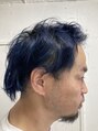鹿の角をモチーフにラインを入れました。カラーは18トーンまでブリーチして深い青にしています。デザインカット/ブリーチカラー/デザインライン/オーシャンカラー/ターコイズブルー/アシンメトリー
