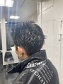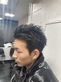 黒髪にハイライトで少しエッジをきかせたスパイキーショートです。サイドとバックはナチュラルに刈り上げ、トップは毛流れと動きが出るくらいの長さです。ワックスとグリースを混ぜてスタイリングします。メンズショート/スパイキーショート/メンズカット