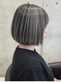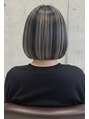 切りっぱなしボブに、トップをブリーチしてアンブレラカラーをしてます。ブリーチはケアブリーチを使用してをり、1回で抜いています。カラーなどもご相談下さい。