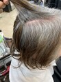 白髪染めを辞めていきたい方にオススメ。頭全体に細かく極細ハイライトカラーをいれ、わざと明るい部分を作ります。新しく髪が伸びてきても気にならない様にカラーしています。白髪染めは一切使ってません。2回カラーをしているのでお時間頂きます。
