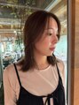 透明感抜群の「寒色ベージュ」で、赤みをしっかり抑えた「くびれミディ」です。鎖骨下のミディアムレングスに、表面と顔周りにたっぷりの「レイヤーカット」を入れることで、自然な軽やかさと、くびれたような綺麗なシルエットを作りました