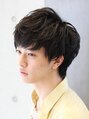 柔らかい印象と男らしい印象をミックスさせた甘辛スタイル。マッシュショートにする事で柔らかい印象を与え、パーマで無造作に動かし黒髪でしめることによってワイルドな印象をプラスしました。どんなかたでも似合いやすいと思います。
