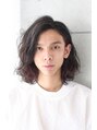 クセ毛の様な作り込まないラフな印象がクールなミディアムスタイル。センターパートではなくあえてサイドパートにする事でラフにかき分けたような印象に。カラ―はブラックベースにインナーカラーで内側にボルドーレッドを入れる事でデザイン性をプラス。